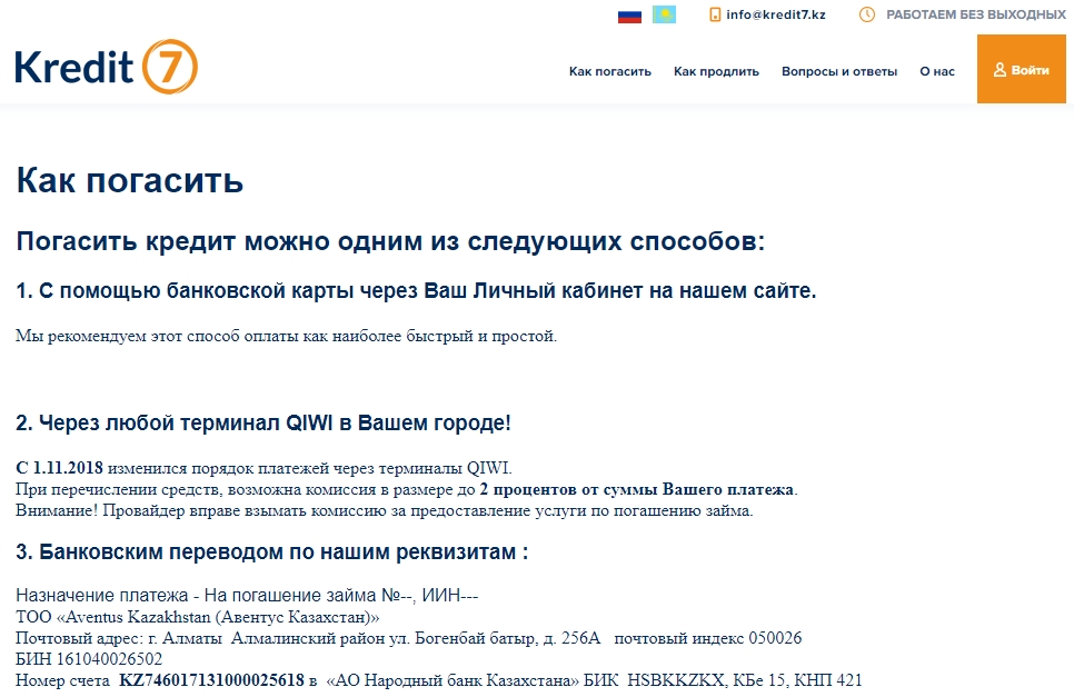 После окончания срока займа важно вернуть сумму вместе с вознаграждением в течение 3-х дней. При этом Кредит7 может списать деньги с банковского счета, когда наступит срок возврата без предупреждения пользователя. Эти условия прописаны в договоре. Погасить долг можно другими доступными способами.