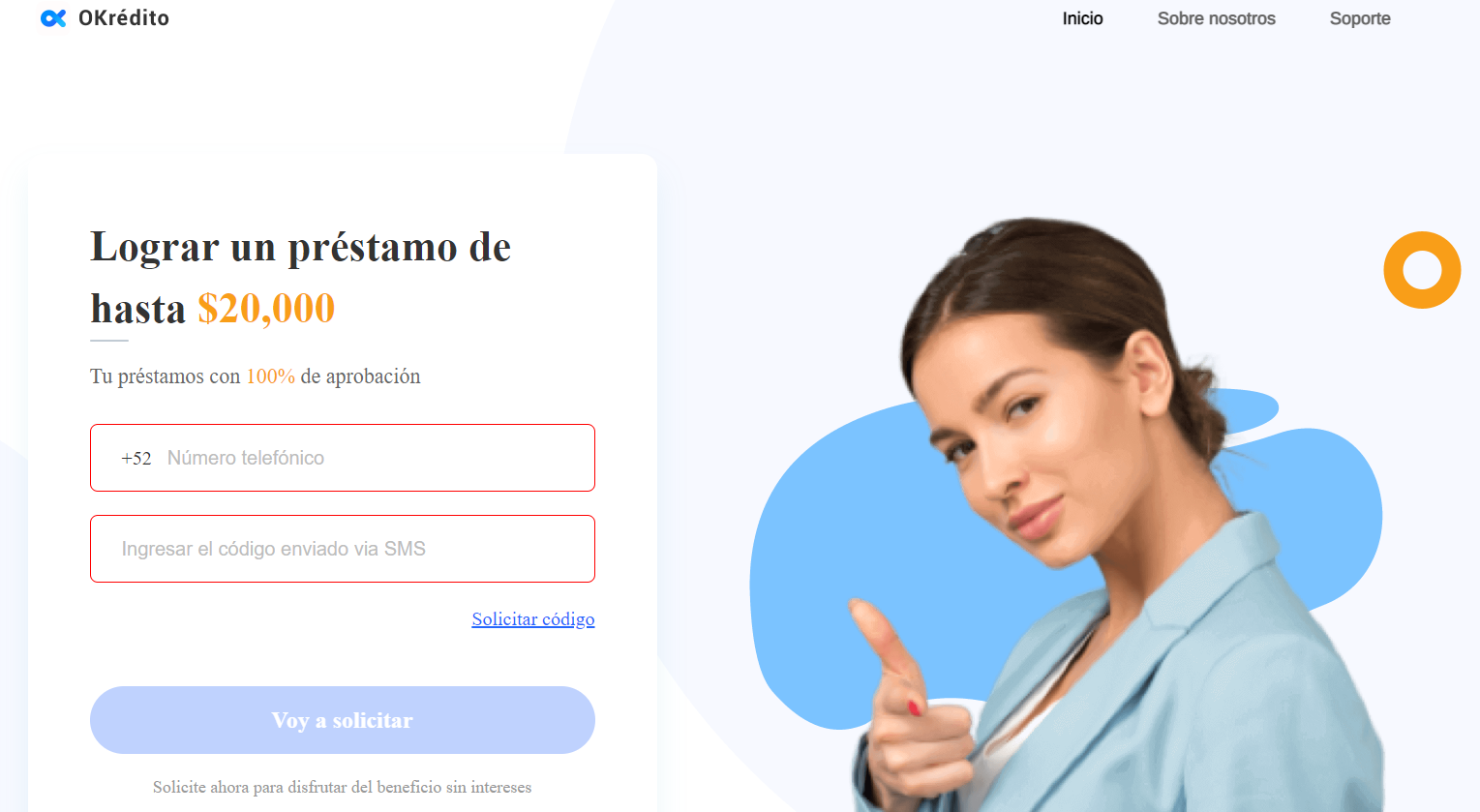 Okrédito es una aplicación móvil que le permite prestar de 1,000 hasta 20,000 pesos mexicanos con el plazo de devolución de 91 a 120 días. Esta plataforma de crédito digital tiene las tasas de interés relativamente bajas comparando con los prestamistas parecidos.