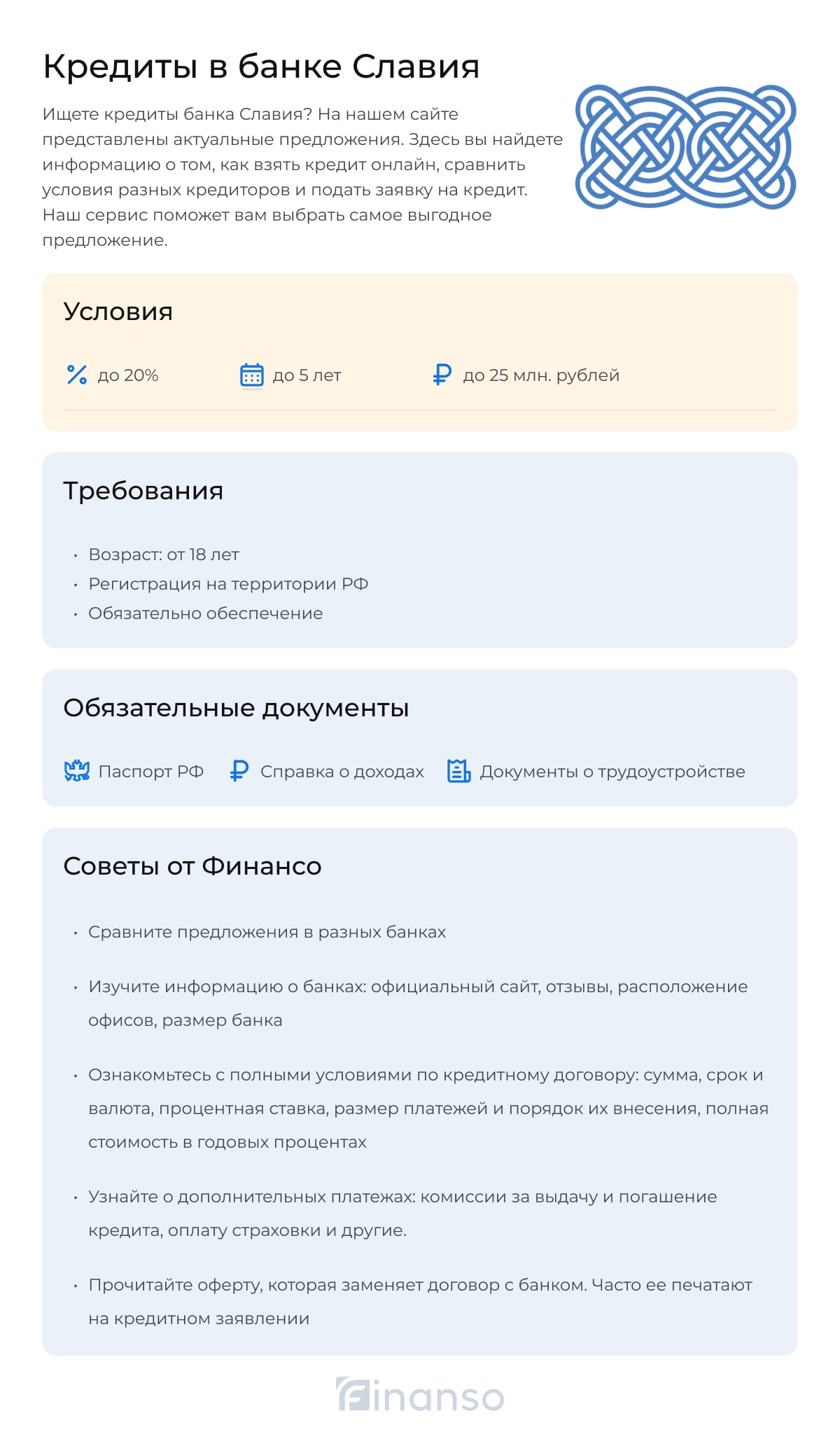 На этой странице предоставлена полная информация о кредитовании в банке Славия. Здесь можно узнать требования и условия, сравнить ставки по кредитам и прочитать отзывы клиентов, а также подать онлайн-заявку.